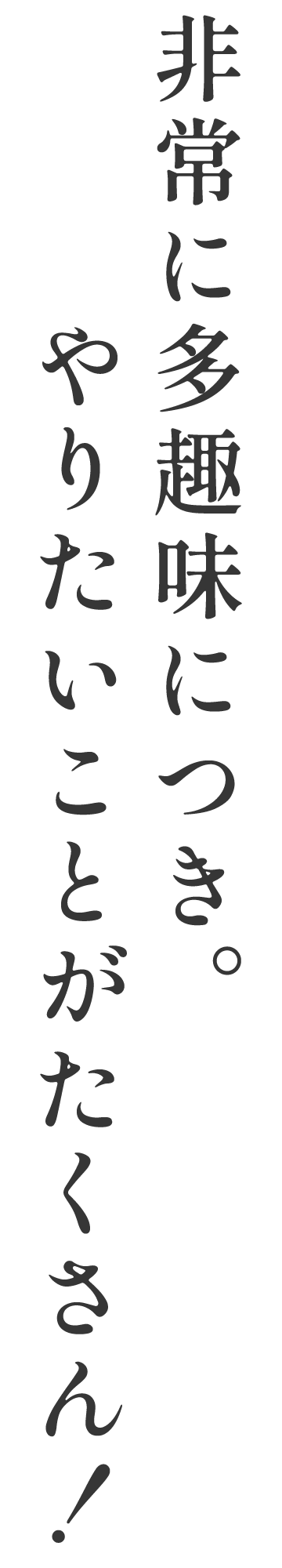 子どものころから多趣味で、体を動かすことと、折り紙・図画工作・お菓子づくりのような手先を動かすこと、どちらも好きでした。