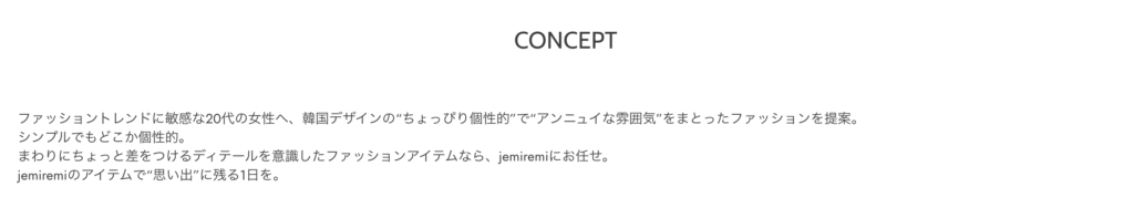 韓国ファッション通販サイト jemiremi様にて、立ち上げ期〜2年弱の間、ECサイト運営・SNS画像作成・特集ライティングに携わっておりました。